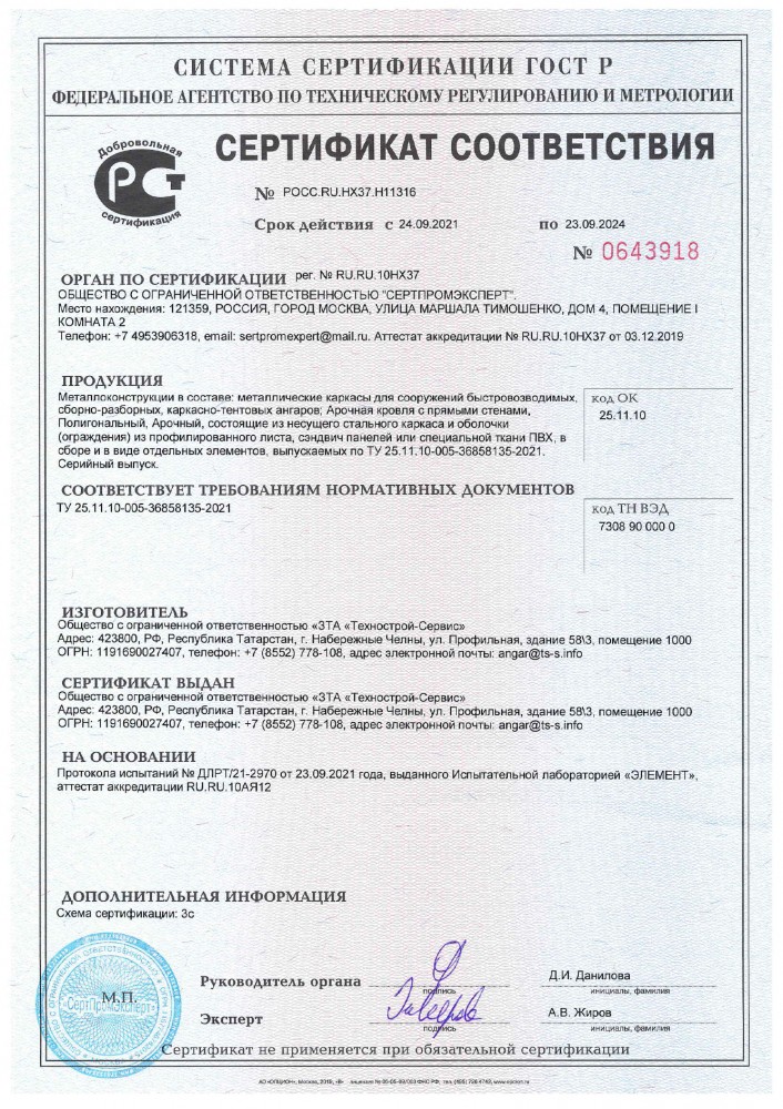 Для реализации этой цели «Технострой-Сервис» располагает высококвалифицированным персоналом, хорошо оснащенной конструкторской, технической и производственной базой. Наши специалисты в короткие сроки произведут монтажные или шеф-монтажные работы заказанных Вами объектов быстровозводимых конструкций из тентового материала, профнастила или сендвич-панелей. Компания дорожит своими клиентами, поэтому предлагает не только изготовление продукции, но и гарантийное обслуживание, скидки на последующие изделия, монтаж. Для корпоративных клиентов, договорные условия.